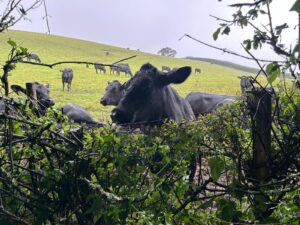 In the end, only seven pioneering individuals could spare the time but those that did enjoyed an experience to remember. We were beautifully hosted by Melissa from the Academy of Wide-hearted Living. We explored our creativity through drawing and writing, individually and together. We learnt new skills including gilding (above). We walked in nature, said “hello” to the local cows (below) and told stories by an open fire. We enjoyed Melissa’s lovely cooking including a regular supply of home-made biscuits. Some communed in the sauna and some even found time to bathe in the local river.